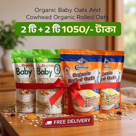Cowhead Organic Rolled Oats – 500g (Pack of 4)