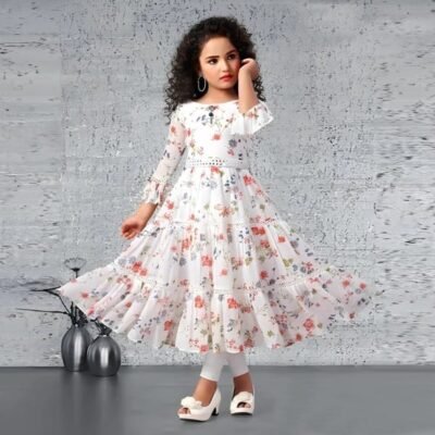 Bright and playful yellow frock with multicolor floral prints. Perfect for festive days, birthday parties, or summer outings. Made with premium linen fabric for softness and comfort.